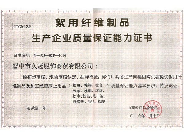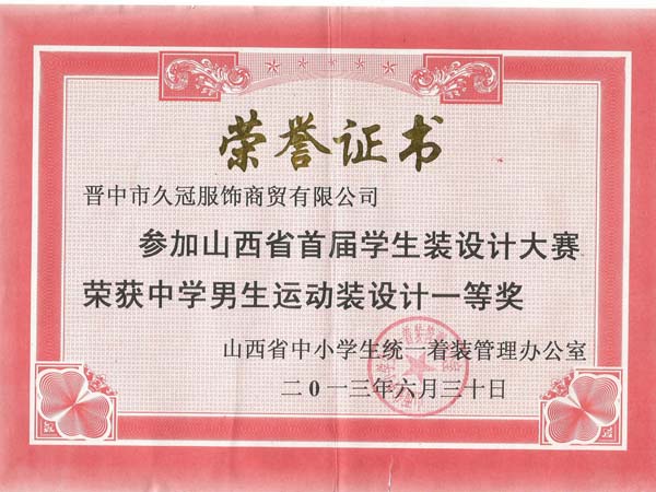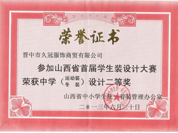 山西久冠服飾有限公司位于晉商故里山西省晉中市。公司注冊商標(biāo)“久冠”,是山西省教育學(xué)會學(xué)生服被裝專業(yè)委員會會長單位,中國質(zhì)量萬里行促進會理事單位,中國教育裝備行業(yè)協(xié)會學(xué)校后勤裝備管理分會常務(wù)理事單位。